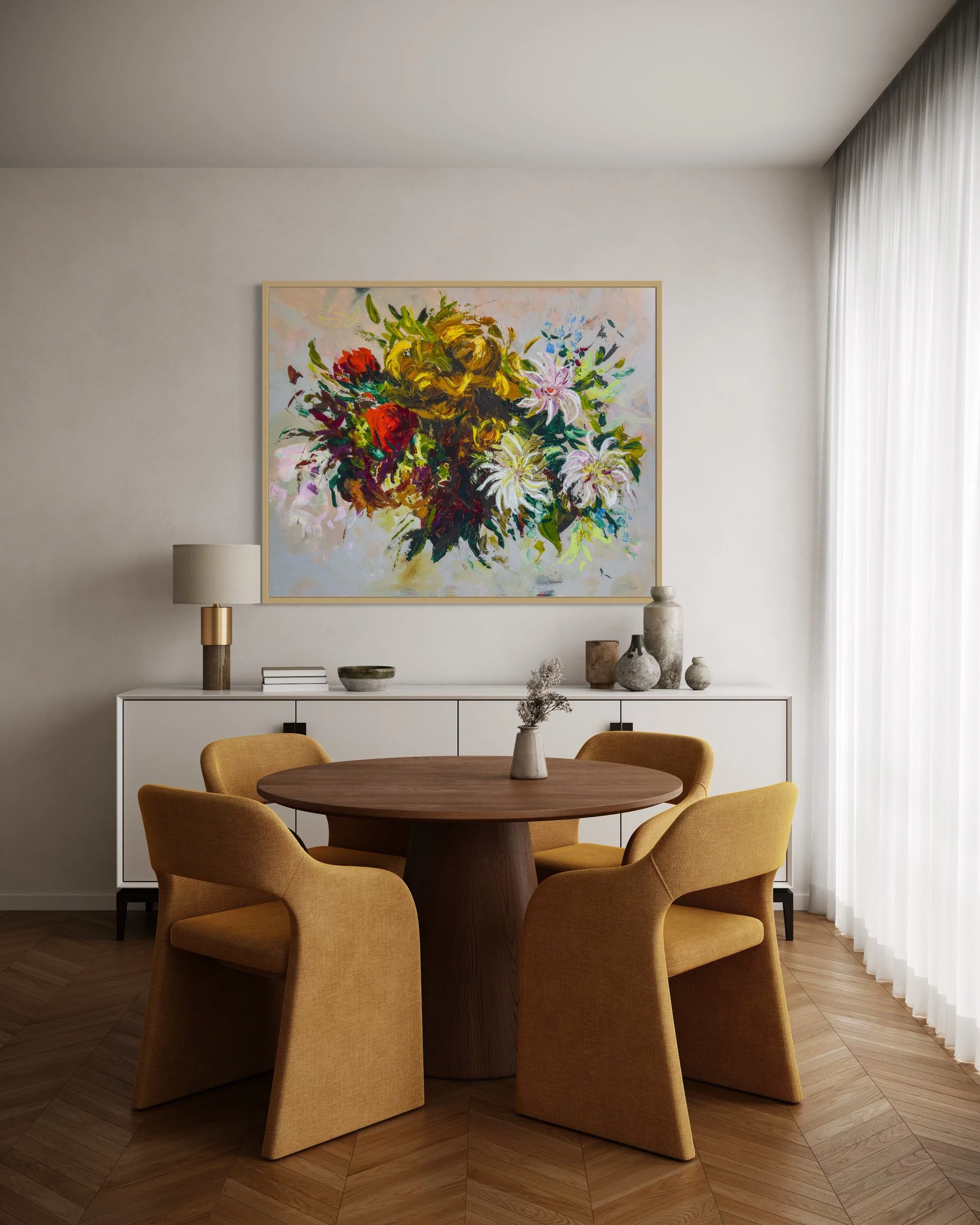 Browse and purchase from a prestige offering of fresh abstract-expressionist pieces that are a conversation in color and make energy visible.
